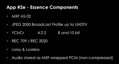 Je me demandais s'il y avait une spécification "App" IMF avec des images non compressées. Effectivement, c'est l'App #1 - probablement défini dans les docs SMPTE ST-2067-1 à 19 [Core]: MXF avec du DPX non compressés. (ils me manquent certains SMPTE-2067 dans ma collection)