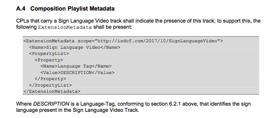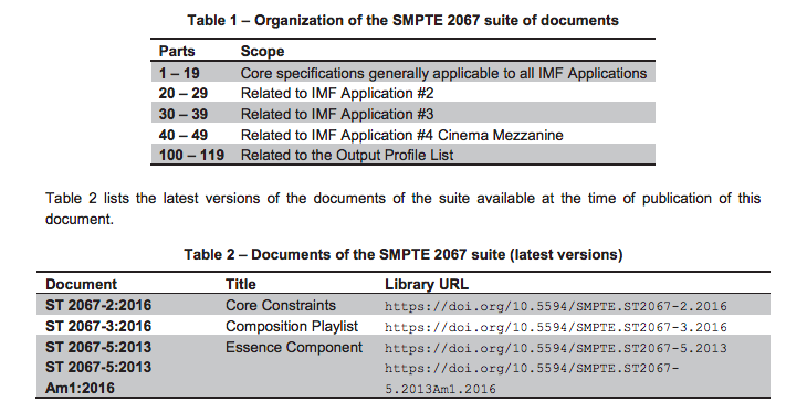 SMPTE RDD-47: IMF ISXD: Une extension pour le format IMF (futur format pour toute l'industrie cinéma/TV/préservation), pas vraiment compris à quoi cela servait... ni même si cela sera utilisé réellement...