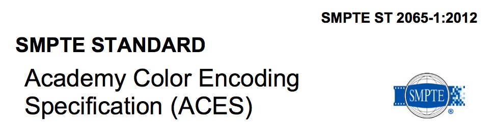SMPTE-2065-1.2012: Academy Color Encoding Specification (ACES), le nouveau système de gestion des couleurs pour le cinéma qui va devenir la référence ultime entre le plateau, la postprod, la projection et la préservation.