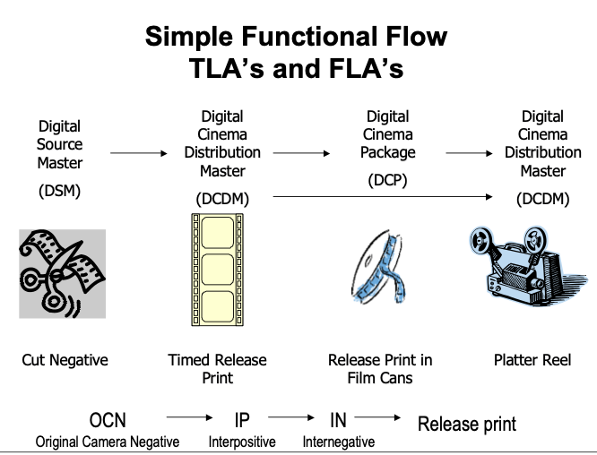 J'aime assez ce résumé du workflow des copies films cinéma (numérique/35mm) :