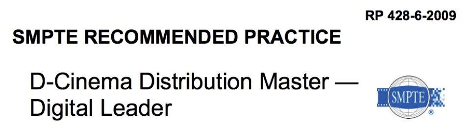 SMPTE.RP.0428-6-2009 - DCDM - Digital Leader : Sous ce nom barbare se cache simplement le début et fin d'un film pour la partie numérique (déjà vu dans ce thread pour la partie 35mm). Cette norme détaille chaque frame de début et de fin.