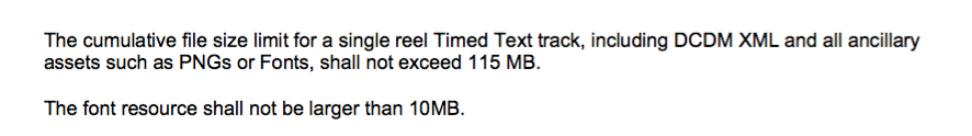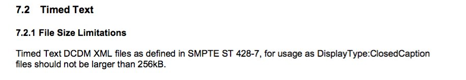 Passage au SMPTE RDD-52-2020: Le DCP Bv2.1, c'est la dernière spécification pour les films numériques cinéma, quelques évolutions (non-exhaustives): Les sous-titres ne doivent pas dépasser 256kB. L'ensemble des contenus pour les subs (XML, PNG, Font) ne doivent pas dépasser 115MB