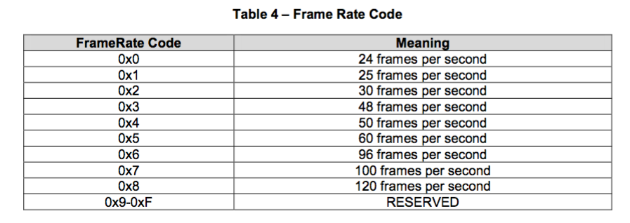 Un gros morceau, SMPTE définissant Dolby Atmos. A retenir: Actuellement, le DolbyA est soit du 48 kHz, soit du 96 kHz et en 24-bit. Que le support des frames sont 24, 25, 30, 48, 50, 60, 96, 100 et 120 images par second. Si vous voyez une séance Dolby Atmos autre, il y a un souci