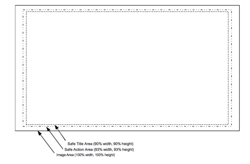 Suite du SMPTE: Je pensais que la "zone sécurisée" dans l'image (vidéo) était une technique qu'on s'échangeait entre techniciens de l'image, mais je m'aperçois qu'elle est défini dans le SMPTE-2046: Elle définit une zone où ne doit placer des informations essentielles dans l'image et le rendu, cela afin d'éviter que - si la régie finale, les intermédiaires techniques ou l'écran du spectateur ne coupe l'image - l'essentiel de l'information de cette dernière reste compréhensible pour le spectateur.