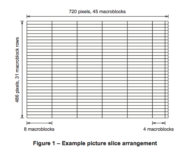(..) la description rapide des macroblocks et des composants YCbCr (Y pour la luminance, Cb: bleu et Cr: rouge, le vert étant calculé), et que tous les blocs de macroblocks ne sont pas égaux, les derniers blocs sont plus petits, à cause de la subdivision imparfaite de l'image