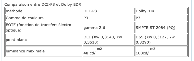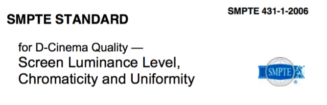 La norme cinéma SMPTE-431-1 défini les bonnes performances cinématographiques en projection numérique (Luminance, Chrominance et Uniformité). Autant vous dire que pas mal d'exploitants ont du mal à respecter 😋 (sauf s'ils font leurs maintenances correctement avec un calibrateur)