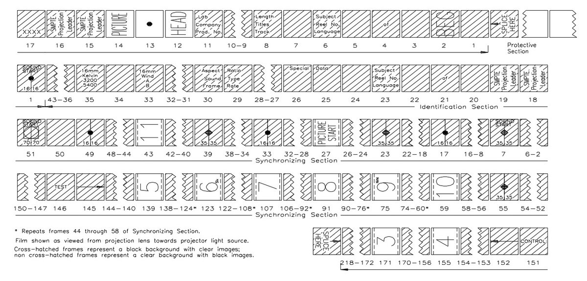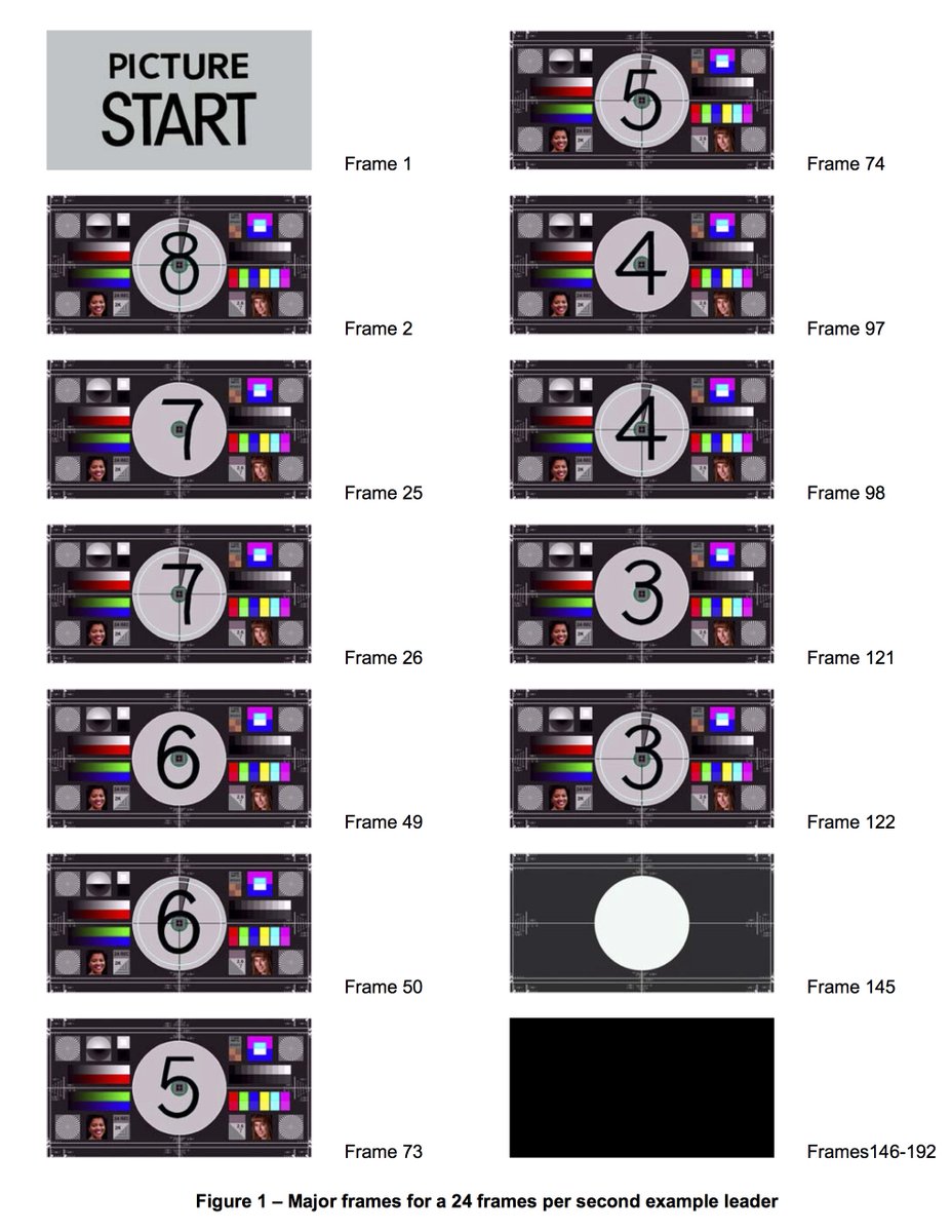 Vous voyez dans les films, le petit passage bizarre au démarrage d'un film 35mm: Le début de la première bobine d'un film comporte des éléments informatifs et sont ultra-codifiés et normalisés à l'image près. Et pas le droit de déborder ! (SMPTE-55)