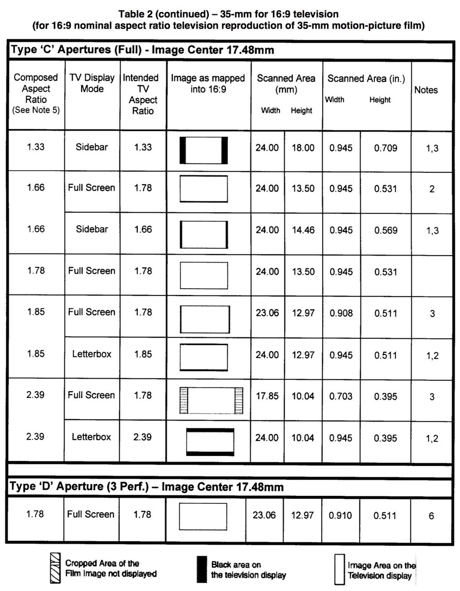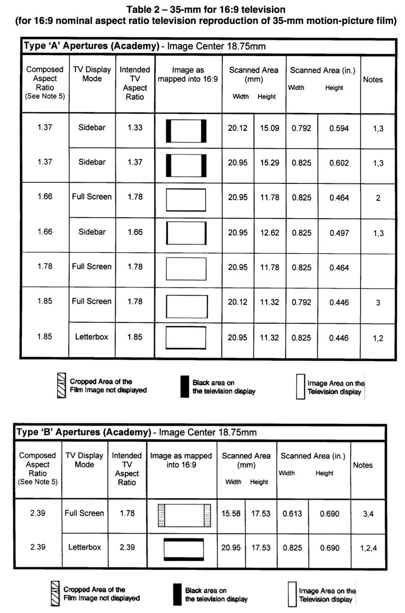 Dans la norme SMPTE-96M, on te donne un tableau récapitulatif d'un film au format cinéma vers un format télévision 16/9.