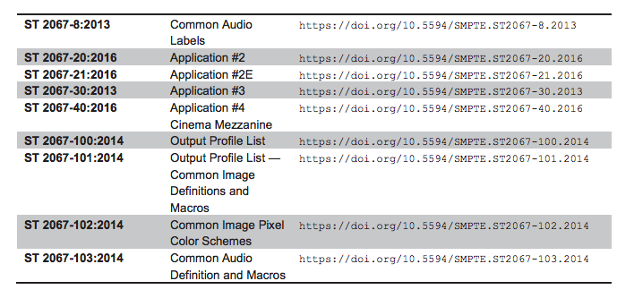 La suite des docs SMPTE ! on passe au 2067-101 sur l'IMF et ses "Output Profile List" avec des petites options pour définir une sortie d'image provenant d'un film "IMFisé". On y retrouve le scale, crop, pixel-enc, etc.. avec des petites touches d'algorithmes