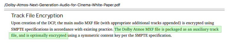 Petite info pour labos cinéma sur l'Atmos: certains matériels Dolby ne supportent pas d'avoir un KDM sans clef de déchiffrement pour les pistes Atmos. Même si, chiffrer les pistes Atmos, est optionnel (cf. règles de Dolby). Seule solution: faire de l'Atmos chiffré quand même…