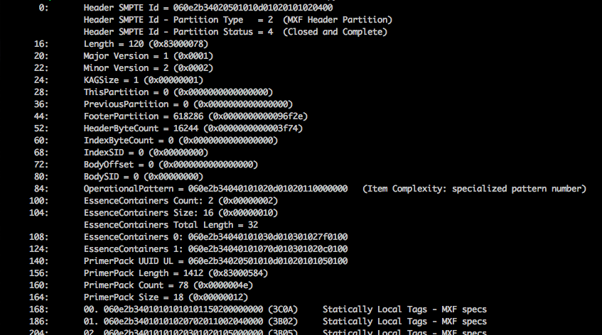 Chaque image d'un film est ensuite empilé par une succession de LEGO (KLV). Après lecture de ce pavé, j'ai pu écrire un parser MXF qui fonctionne à merveille ! (et qui me servira pour mes futurs travaux). Fin des tweets techs, je ferai peut-être un papier-résumé pour + d'infos :)