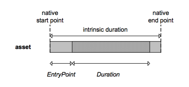- La différence entre IntrinsicDuration et Duration: IntrinsicDuration est la durée totale de l'asset de la bobine, Duration est la portion qu'on souhaite utiliser en projection (en utilisant l'EntryPoint)