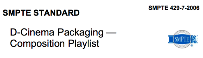 Et là, j'attaque le SMPTE-429-7 sur les fameuses Composition Playlist (CPL), élément important de tout film cinéma numérique. C'est une version des normes de base n'évoquant pas encore les pistes auxiliaires (AuxData) permettant de jouer du Dolby Atmos ou du DBox ~~(cinéma 4DX)~~