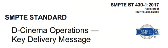 On passe au SMPTE-430-1: KDM (les messages contenant les clefs de déchiffrement des films cinémas). C'est seulement une base de normalisation. Les éléments à retenir sont principalement la structure du CipherValue contenant les métadonnées et les clefs pour le film (AES)