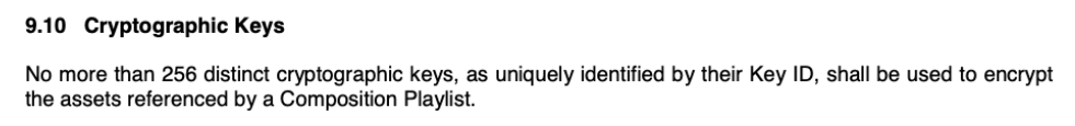 KDM : J'avais oublié qu'il a une limitation de 256 clefs cryptographiques pour une version de film (en plus technique: 256 KeyId maximum par CPL et donc KDM) - Ref. SMPTE 429-2-2013 - DCP Operational Constraints