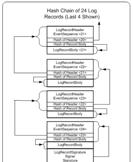 Quand le cinéma numérique faisait déjà du blockchain avant la hype de 2008. Dès le début du DCI (2006), les journaux d'activité en salle cinéma devaient être parfaitement certifiés: chaque évènement était loggué et avec un peu de crypto, authentifiait l'évènement et son précédent