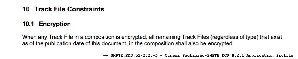 - Le DCP SMPTE 2.1B impose un chiffrement des sous-titres si autres pistes chiffrées