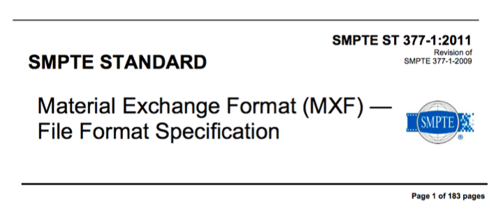 Petit préambule: le format MXF est devenu la norme pour la diffusion en télévision et au cinéma et prochainement pour le stockage long-durée d'oeuvres cinématographiques (IMF). C'est donc un format important dans le milieu audiovisuel.