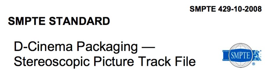 On passe la stéréoscopie avec le SMPTE-429-10. Pas grand chose de neuf, hormis que le MainStereoscopicPicture est une instance PictureTrackFileAssetType (voir tweets précédents). Et on commence toujours le film, la première frame dans le MXF, est l'image pour l'oeil gauche.
